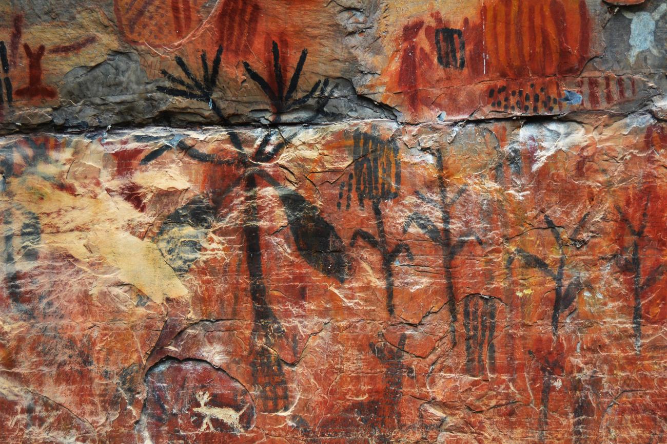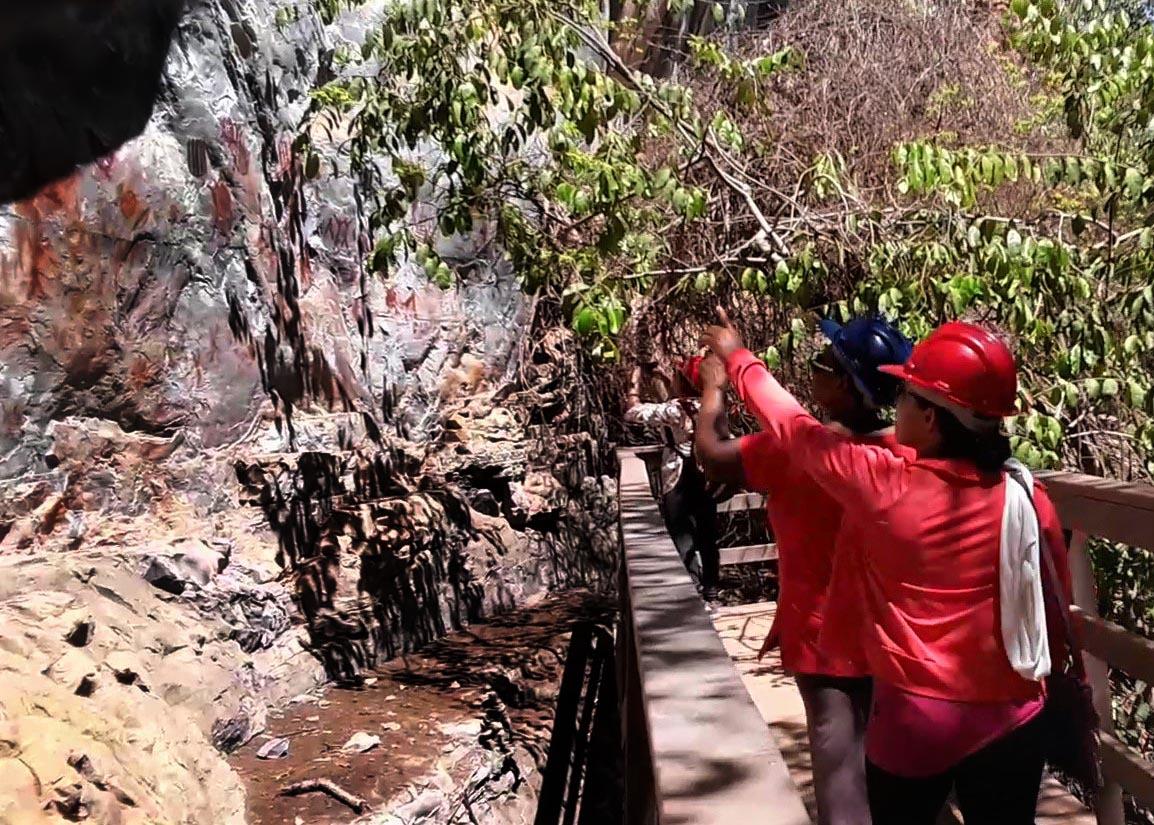 The rock paintings are the main traces and testimonies of the relationship and cultural identity of the peoples who had lived and people who now live in the Peruaçu River Basin. Consequently, during the Exchange the first visit of potters to the rock paintings of the Peruaçu National Park after the implementation of the Conservation Unit was proposed. Jesuíta was the first community member to report the similarity of traditional paintings to the ancient rock paintings which still exist on the archaeological sites. The words of Jesuíta seeing such paintings for the first time strengthens the theory of these linkages between the existing communities and the ancient indigenous group: