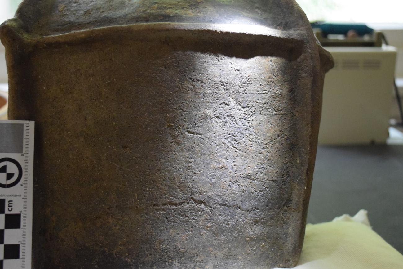 The urn was examined and photographed for evidence of forming-related macroscopic features. The examination was completed using the naked eye and controlled lighting conditions, as well as through handling the object itself. Controlled lighting conditions allow for a small flashlight to expose small scale details of surface topographies, which are created as a ceramic object is formed by a potter. The range of actions which can generate these surface topographies has been described extensively, in particular by Valentine Roux (2016), and form a strong foundation for assessment of potting practices. The author is an experimental archaeologist who has more than 15 years of potting practice, specifically in investigating potting technologies and strategies.