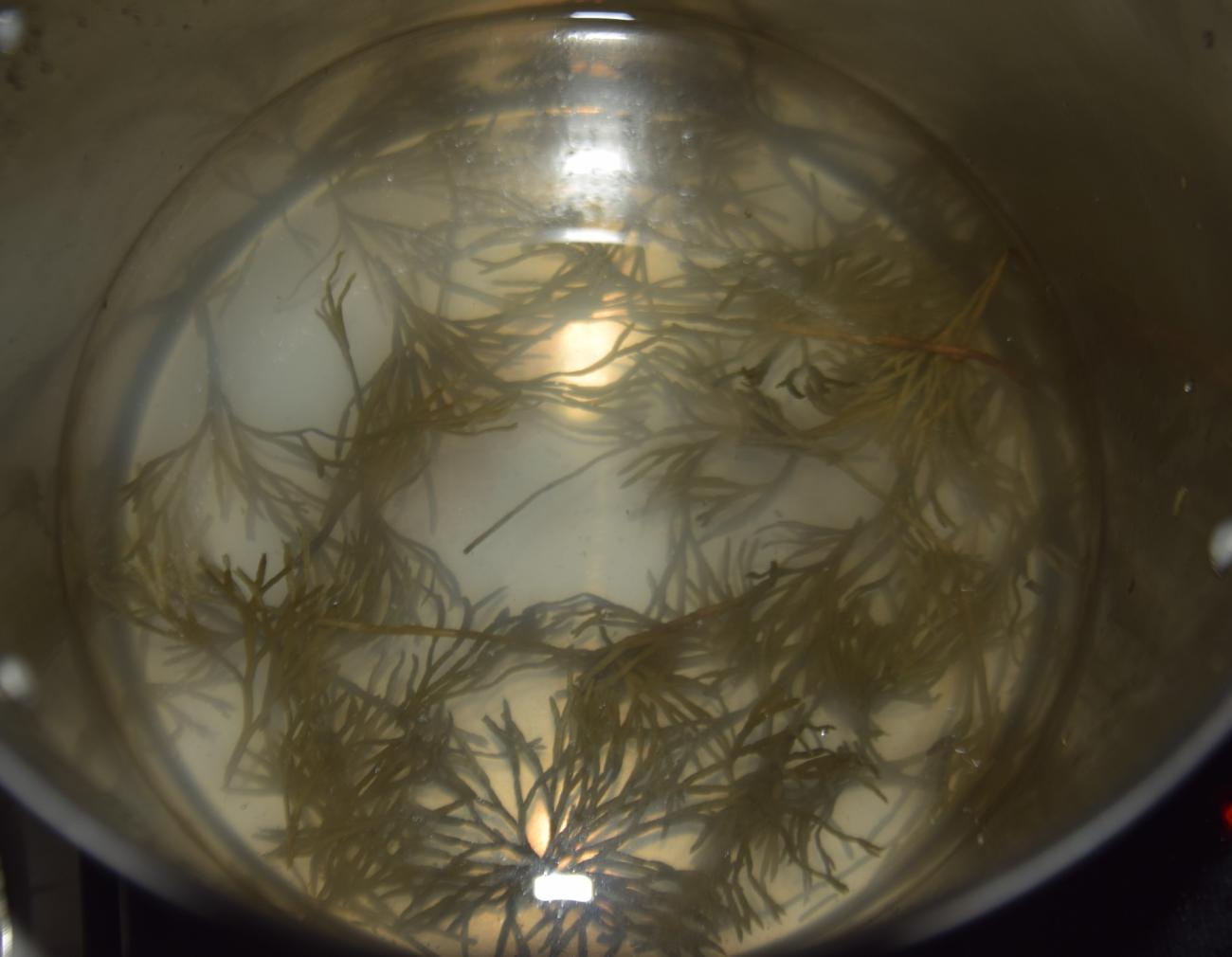 For the experiment, Lycopodium complanatum species was chosen as it has been shown that almost certain it was used as a mordant. Another chosen plant was a field horsetail (Equisetum arvense). Even if field horsetail contains a relatively low amount of aluminium, it is a common invasive plant growing in large quantities; therefore would have been relatively simple for a dyer to collect the needed quantity.