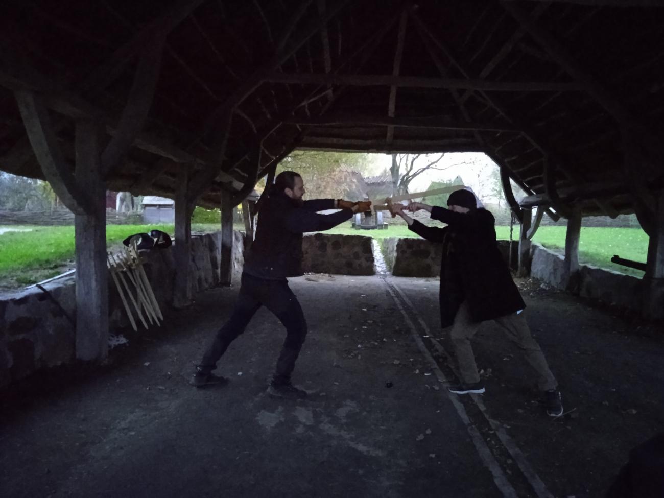 After a coffee break Joakim Løvgren held a workshop about historical fencing. He presented the problems of our loss of knowledge of medieval fencing, but also on his attempts to recreate the skill from descriptions from the period. The participants were then invited to reenact fencing with wooden swords based on a short demonstration by Joakim and copies of German medieval descriptions. After this Kari Marie Helland held a workshop on nettle fibres, cord, and net binding, demonstrating a wide variety of crafts made from nettles including their archaeological contexts. The participants themselves were given the opportunity to try techniques of making cord from nettles that Kari had brought along.