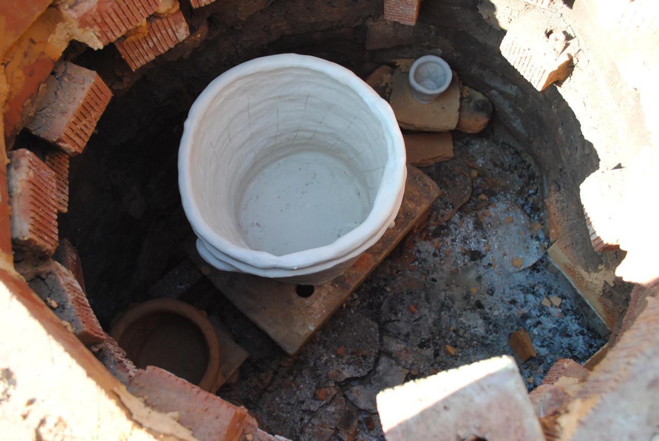 Unfortunately, the dome did not survive the firing. It is likely to have failed because no fuel was added after the three-hour mark. This meant the cooling of the kiln could start and the slow