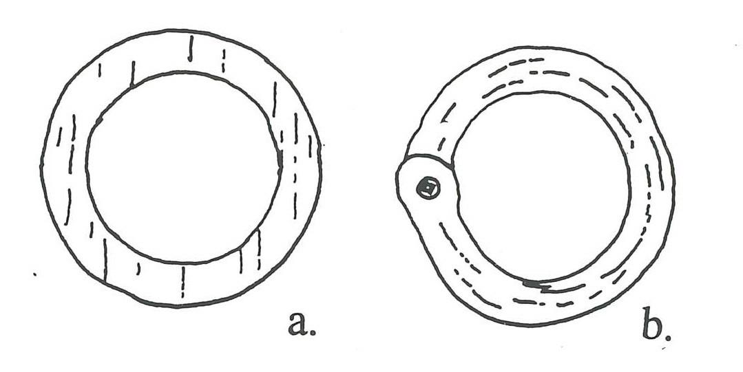 The rings are either solid (without signs of joining), welded (bent, overlapped and welded), riveted (bent, overlapped and joined with rivets) or bended (bent but not overlapped). Most often, a combination of solid and riveted rings occurs, frequently supplemented with individual bended rings (Burgess 1953a; 1953b; Smith, 1959; Drescher, 1981). This is quite similar to the chain mail from Brokær in Southern Jutland2 , which dates to the older Roman Iron Age (shortly before CE 100) (Jouttijärvi, 1995, Fig. 1-3; Rasmussen, 1995, p.42). Other chain mail, such as that from Hedegård in Central Jutland3 , consists exclusively of riveted rings (Madsen, 1999, p.85). Its rings are quite small and uniform, 5 mm in diameter, and made of wire with a diameter of only 0.9 to 1.0 mm. Currently, this chain mail weights 10.36 kg. Its rings are some of the thinnest and smallest found in chain mail from Scandinavia.