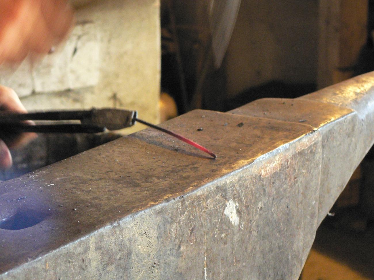 The drawing resulted in seven long iron wires that were 15-31 cm in length with diameters between 1.1 and 3 mm and several shorter wires. A modest amount of slag (under 50 g) lay in the forge and on the floor was anvil slag of quite a few hammer scale flakes and spheroids (10 g in total), as well as several pointed ends of forged rods and short pieces of drawn wire. This is such a characteristic waste, it should be possible to identify it in the archaeological material (See Figure 12).