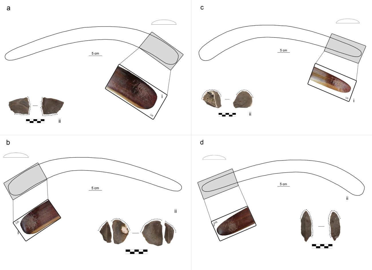- traceological similarities between retouch-induced impact traces observed on boomerangs and bone retouchers.