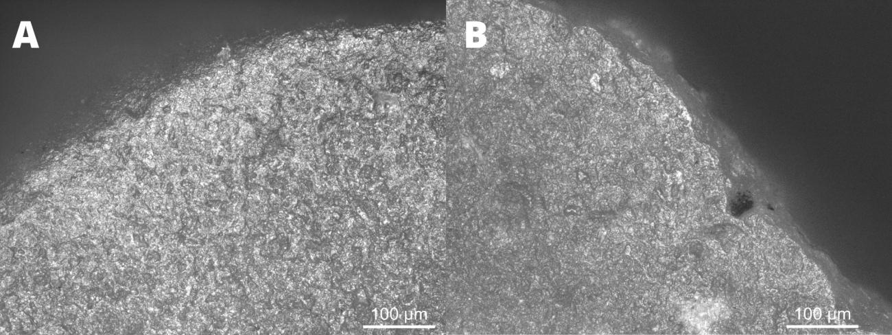 Interestingly, in one instance small, isolated spots of polish could be observed (See Figure 8B). These traces were consistent with those observed on experimental scrapers used for dehairing dry hides (Petrogiannaki, 2022, pp. 48-50). This scraper was thus interpreted as having been used to dehair animal hides (See Figure 8b and 9).