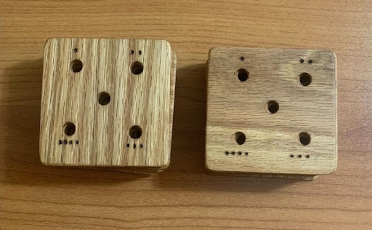 With the wool spun into a two-ply yarn with a diameter 0.3 mm- 0.4 mm, then the work of tablet-weaving begins. These tools, in particular, rarely survive. The most quintessential pieces of tablet-weaving are the tablets or cards themselves. Tablets are small and thin objects, typically square, with a hole in each corner (Meyers, 2013, pp.257-258). Other shapes have been found, such as triangular, hexagonal, and octagonal, however these shapes were not used in Etruscan textiles (Goslee, 2013, pp.32-44). The tablets used in the experiment are 6.3 cm by 6.1cm by 2.4 mm pieces of oak-wood. This is one of the standard sizes used in modern tablets (See Figure 5) (Knudsen, 2019, p.254). Several square tablets, made out of both wood and bone, have been recovered from Etruria. These finds are smaller than the tablets used in the experiment, however there are not enough artifacts found to determine an average size (Knudsen, 2019, p.259). Other European and Roman finds show a variety of sizes and materials (Hopkins and Kania, 2018, pp.36-40). It is important to note, however, the size of the tablets does not change the final weave.