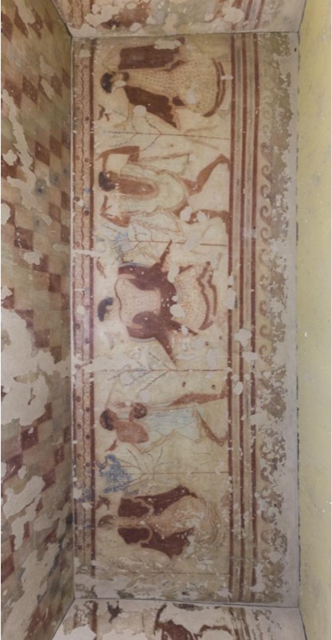 The Tomb of the Triclinium is a 5th Century Etruscan tomb which depicts a dining scene. The Tomb is a single room with three walls painted with figures, and a painted roof that mimics Etruscan decoration and architecture (Steingräber, 2006, pp.134-139). There is a significant amount of data and information contained in the Tomb of the Triclinium; and due to the scope of this project the entire tomb and its patterns cannot be documented here. For this experiment the left and right wall of the Tomb of the Triclinium is the focus, and all of the textile patterns will be based on the depictions of tablet-woven textiles from those walls. Even then, this is a case study of a few of the designs on those walls, as each figure depicted has a number of tablet-woven designs on their clothes (See Figure 1 and 2).
