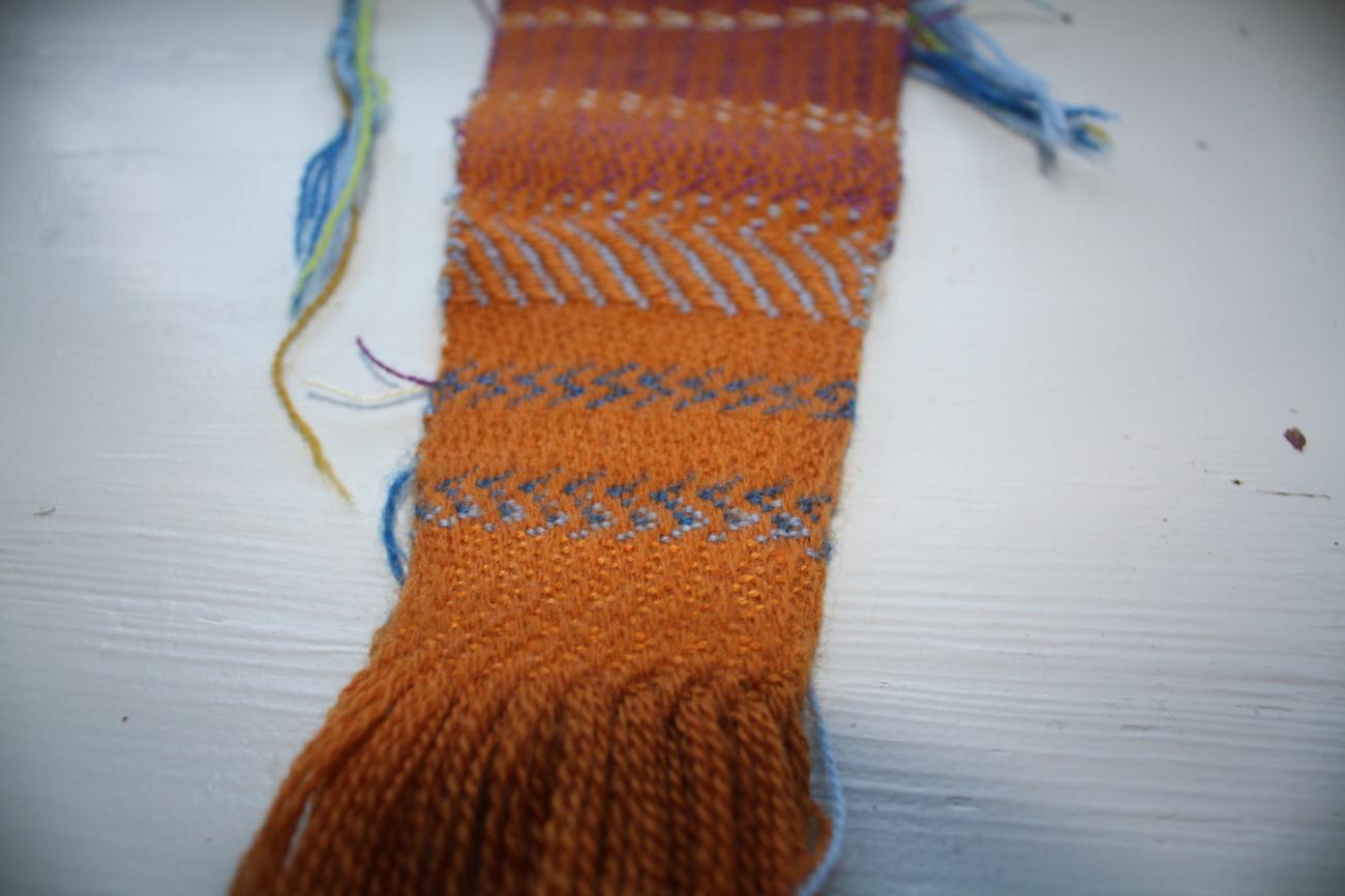 In many ways it seems like the 8-point satin is a reinforced satin (Svarstad, 1998, pp. 40 - 42). If I had enough space for seven rods on my warp-weighted loom, I am sure the patterns would have looked a little bit better than they do today (See Figure E, F, G, H, I, J and K).