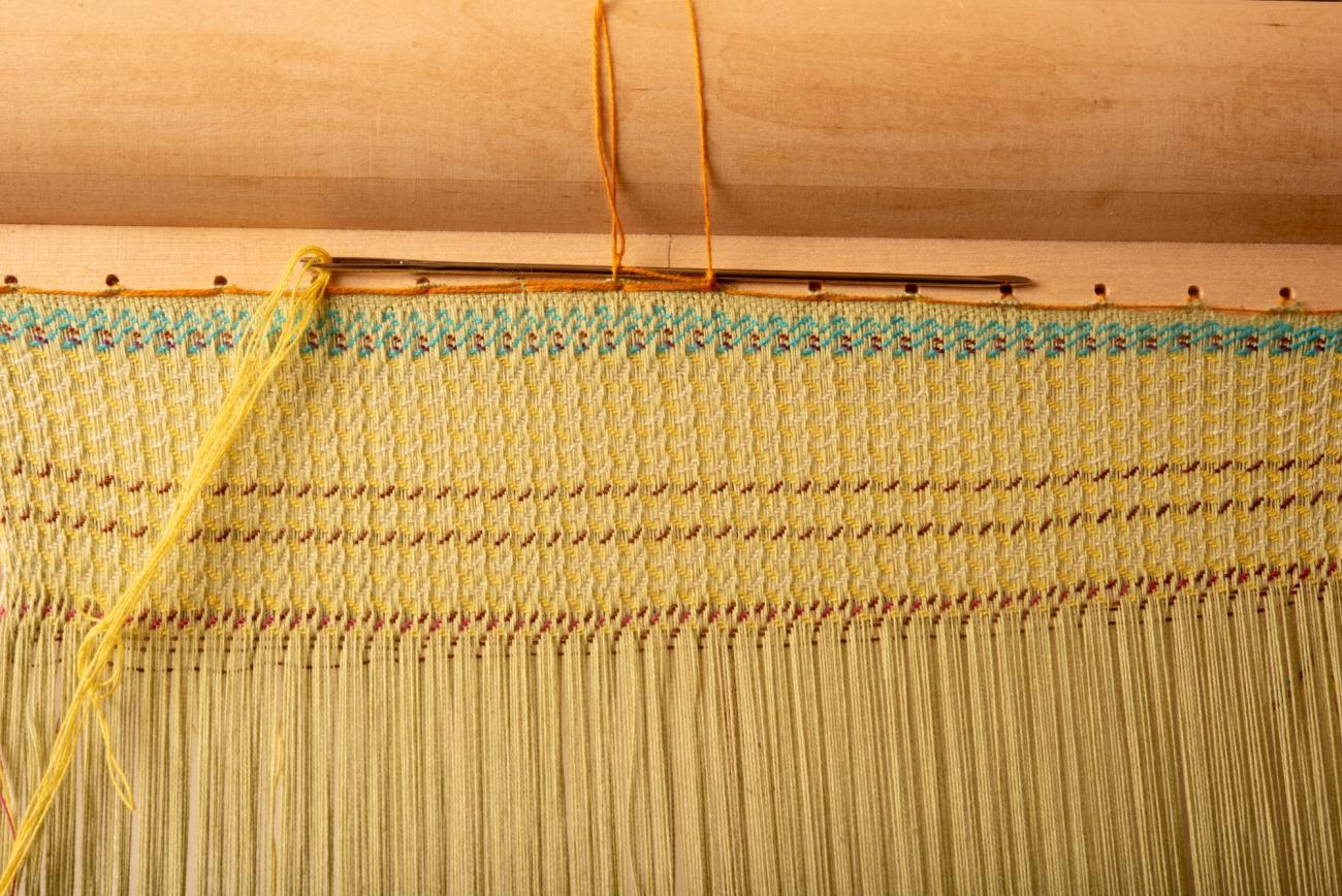 - To weave an 8-end regular satin, I had to hand pick the three "extra" rods since I had no space for eight rods on my warp-weighted loom. I used a needle when I was picking up the three extra rods (See Figure 8).