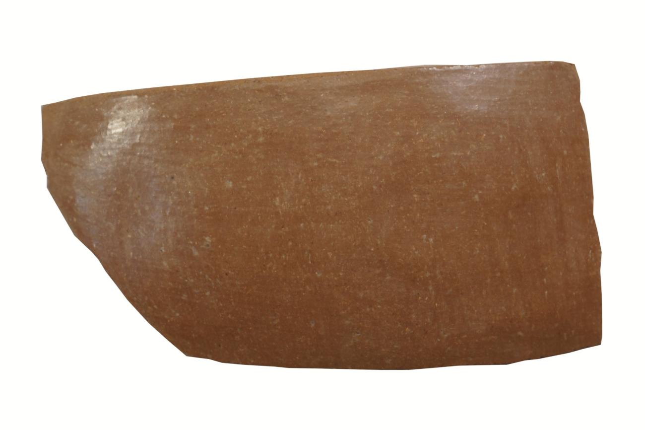 Burnishing is produced by rubbing against the leather-hard surface of the pottery with a smooth medium - for example, a pebble or piece of bone. As a result, the sunlight is reflected on the surface, producing, at its maximum, specular reflection and a very bright sheen (See Figure 1). The shiny appearance seems to result from the rearrangement and orientation of the surface clay particles and their following compression (Shepard, 1956, pp.67, 191; Rice, 1987, p.138). Through rubbing, a mechanical coat, a so-called “self-slip”, is created, which is visible to the naked eye alongside the fresh break of the pots.