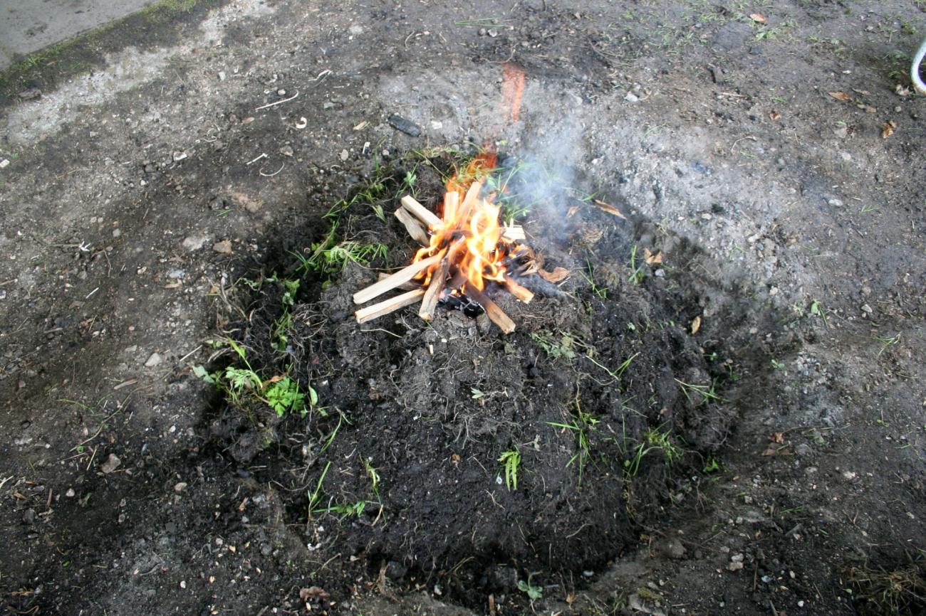 A depression (shallow pit) 1.10 x 1.40 m in size and 0.30 m deep was dug in the ground and used for all three open-air firings. Although not precisely the same, the total volume of the pile of the pottery in each firing was similar, with a maximum size of 0.40 x 0.35 m, and a maximum height of 0.17 m.