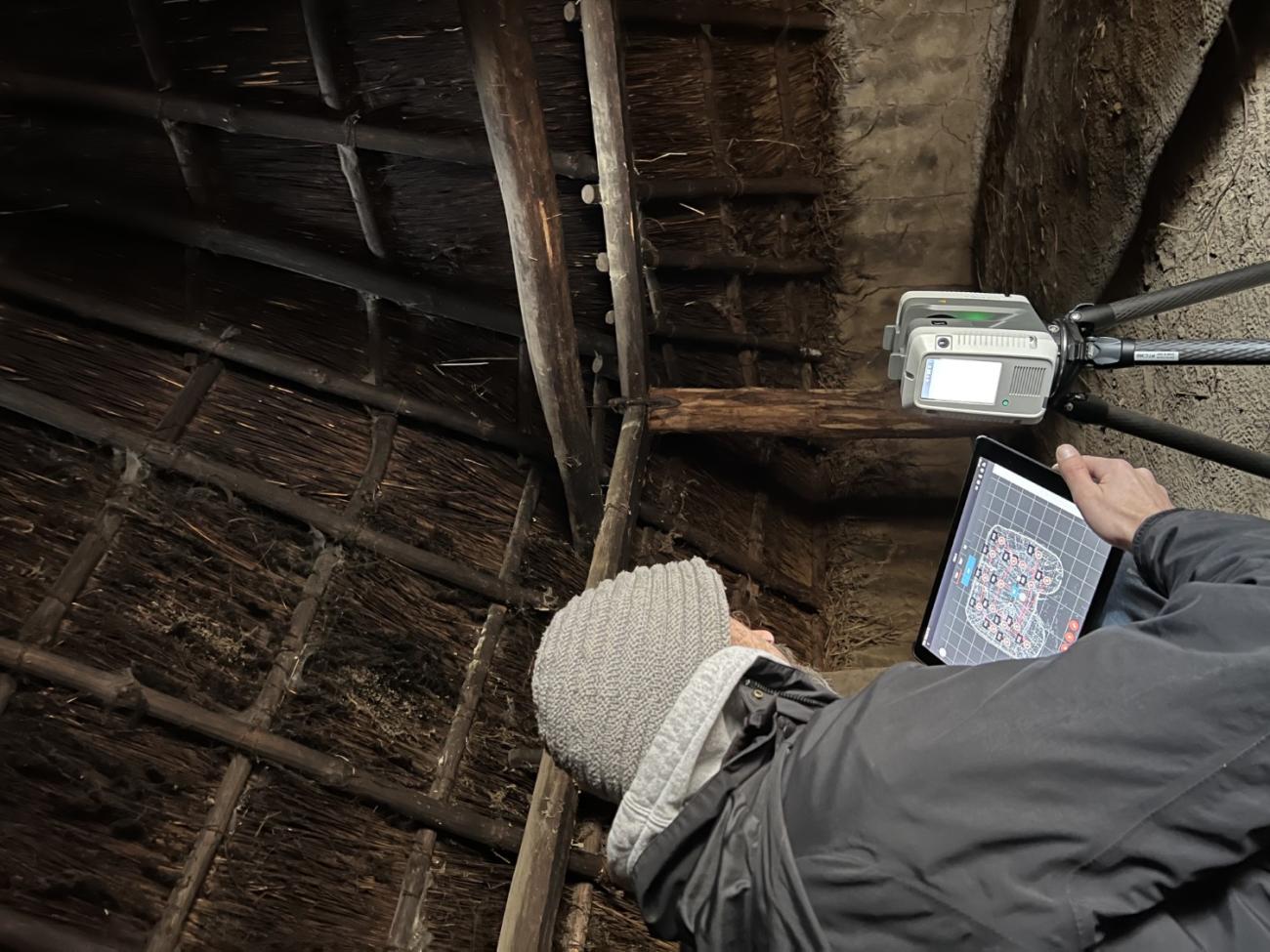 The Museumsdorf Düppel are currently preparing the digital files for inputting into the RETOLD application. Part of the RETOLD application is a tool based on 3D models of the reconstructed houses. The 3D models are used to place marks where maintenance issues have arisen, as well as for the annual documentation walk-through. We were lucky enough to apply successfully for a digitisation project in cooperation with the technical college HTW in Berlin to create 3D scans of the reconstructed houses at the Museumsdorf Düppel. After the historic houses were recorded from the outside as 3D scans by HTW as the first approved digiS project, the interiors of the houses were 3D recorded as part of a second project. The project “düppel:3D” includes the further digitization of cultural assets with a focus on the interiors as well as the digitization of additional artefacts and objects to impart knowledge using virtual reality and game technology in the form of an interactive 3D experience. This means that we have high resolution 3D models to use for testing the RETOLD documentation application. Most of the time open-air museums do not have easy access to 3D models of their houses. This is why, as part of the RETOLD application, there will be easy alternatives in the form of 3D sketches done from simple drawings.