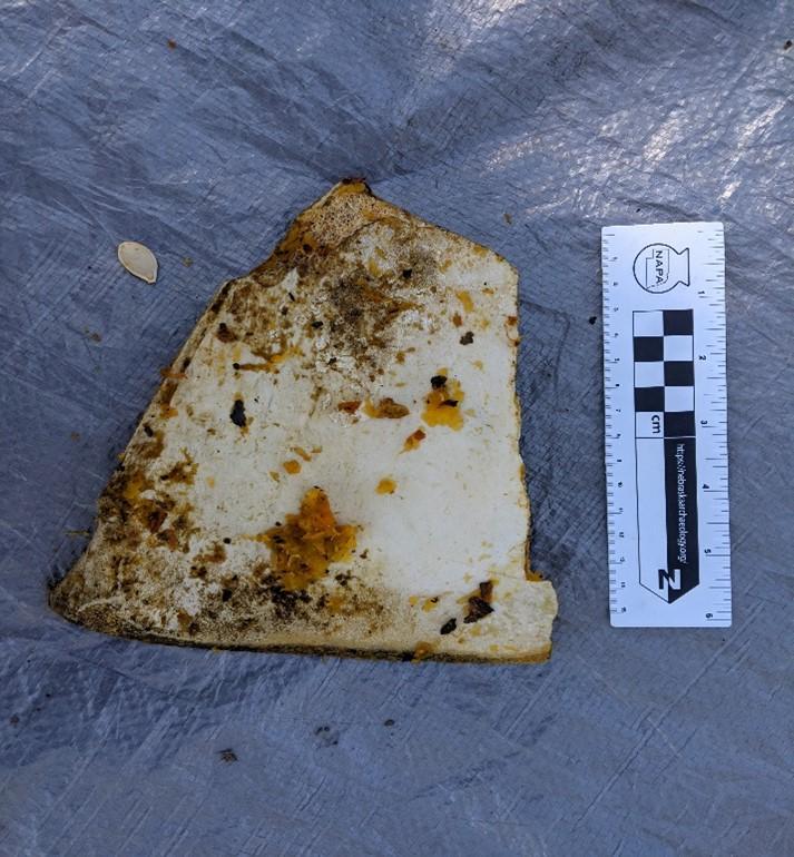 The chaƮne opƩratoire of processed pumpkin mats reveal why recovery may be so low: there is little chance for charred seeds or rinds to be recovered in context of storage pits. The roasting of pumpkin rind also complicates the ability to identify this practice in the archaeological record; the diagnostic phytoliths associated with Cucurbits are within the rind (Bozarth, 1987, 1985; Piperno et al., 2002). The chaƮne opƩratoire implied within this experiment is that it is best to discard the charred rind prior to manufacture and storage of pumpkin mats; this process would imply that diagnostic phytolith remains of pumpkin would be very limited, even in areas where the ethnographic literature indicates that they were most commonly kept, such as storage pits.