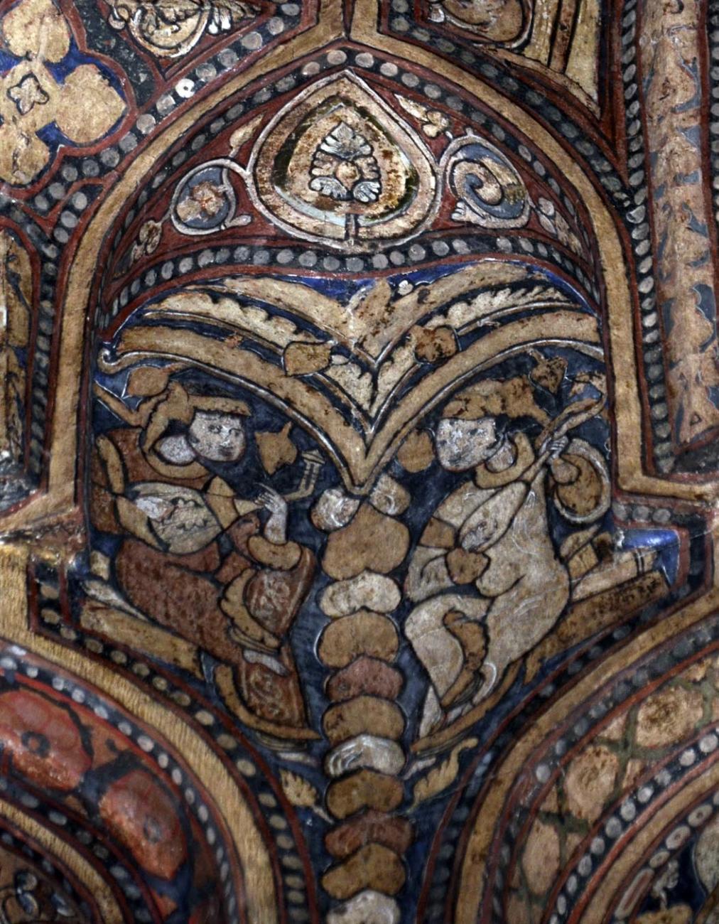 The figures with musical instruments are situated on the ceiling of the central nave and of the two side naves (Johns, 2010). There are some differences between these two locations.