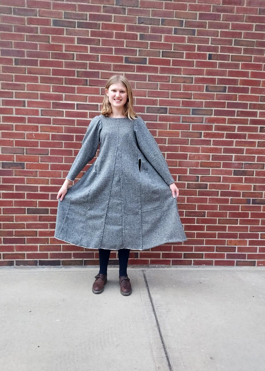We set out on this project to figure out "why did these stitches exist" and, to some extent, we found our answer. In a world before sewing machines, where garment construction was done by hand and wool was a valuable resource, these stitches make sense. Sewing from the outside of the garment uses less thread and allows for more control over the shaping of the fabric and stitching. This allows for minute changes on the go which lead to a cohesive garment and decreases the need for pressing your seams after the fact. In fact, once we had the dress finished and it was on a mannequin in the costume shop, several of our costume construction colleagues remarked that the medieval side looked more professional and "modern" than the side that used the modern sewing techniques.