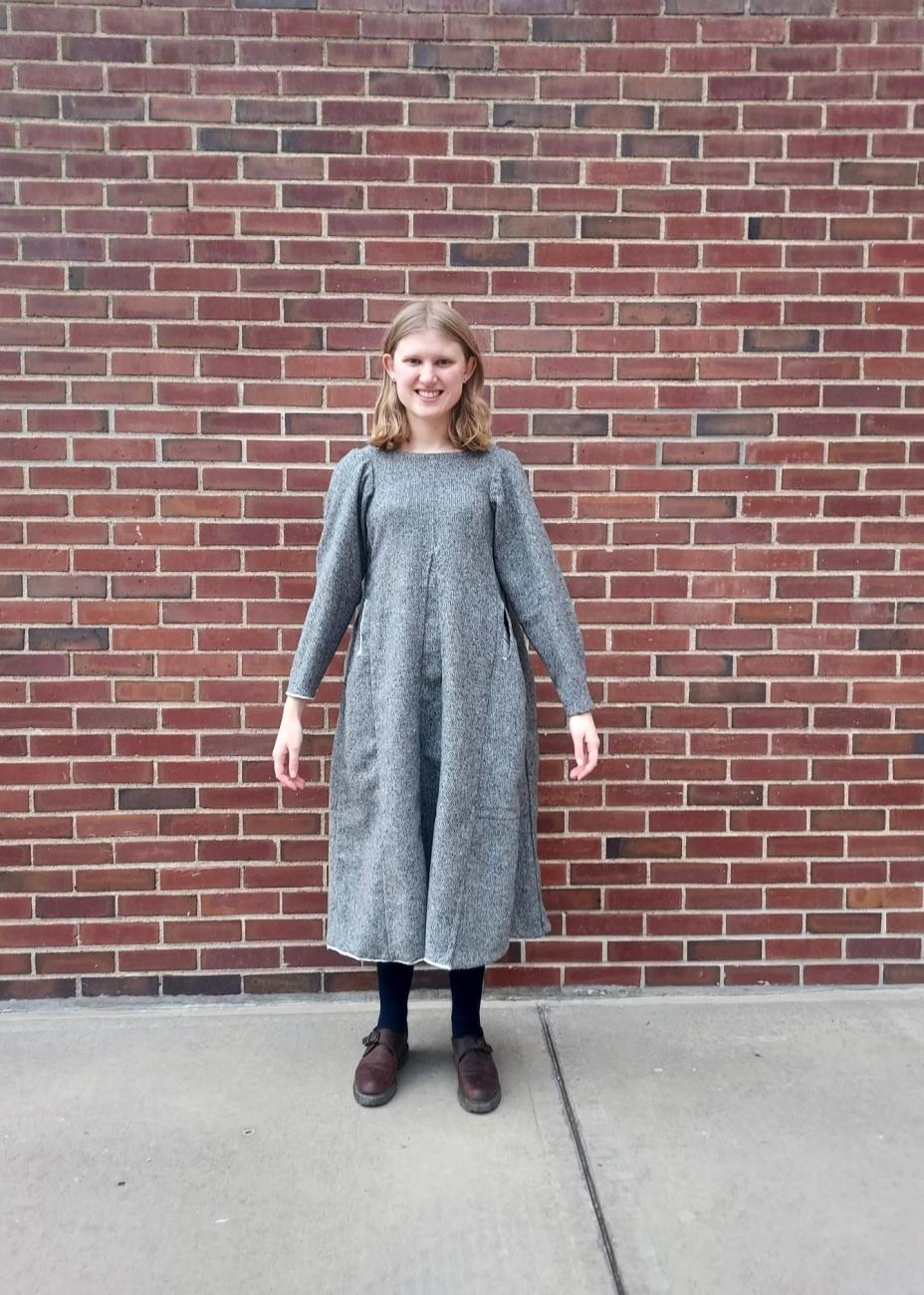 Since natural fibres do not survive well in northern European environments, the lack of actual archaeological examples available to study makes the study of medieval textiles difficult. This makes the Herjolfsnes garments, intact garments preserved in a bog near a Norse village in Greenland from the 14th and early 15th centuries, especially important for our understanding of medieval northern European clothing (Roesdahl and Verhaege, 2011, p. 206). In investigating these garments, we were struck by the surprising choice of stitches used in the seams of the garment, specifically those outlined in Lili Fransen et al.'s Medieval Garments Reconstructed (Fransen, Nørgaard and ĂstergĂĽrd, 2011, p. 28). This is important, as seams are not merely a part of a garment, but rather the central element which determines its fit and function. The seam construction in these garments was not typical of modern sewing methods, and we were interested to see what purpose this type of construction might serve. In order to better understand these choices of stitching technique and seam construction, we recreated a medieval garment based on those detailed in Poul Nørlund's Buried Norsemen at Herjolfsnes, an Archaeological and Historical Study, specifically using period stitching techniques as detailed in Medieval Garments Reconstructed: Norse Clothing Patterns, in order to understand how construction methods of these garments affected fit, shape, drape, appearance, durability, and the process of construction (Nørlund, 1924; Fransen, Nørgaard and ĂstergĂĽrd, 2011, p. 28). To better understand the differences between 14th century and modern seam and stitch techniques, we hand stitched one half of the garment as we would today and one half with the 14th century stitch choices.