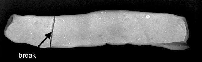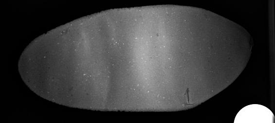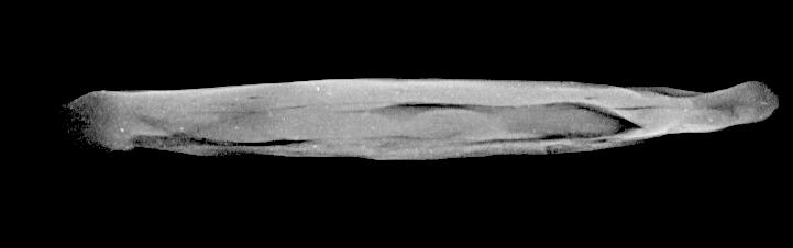 As regards folded tablets, the multiple folding actions and the subsequent smoothing of the edges and joints make it difficult to detect directionality of the rolling pin. No pattern can easily be discerned on the X-ray (See Figure 10). Whether or not the clay ball was first shaped into a coil cannot be detected by X-ray.