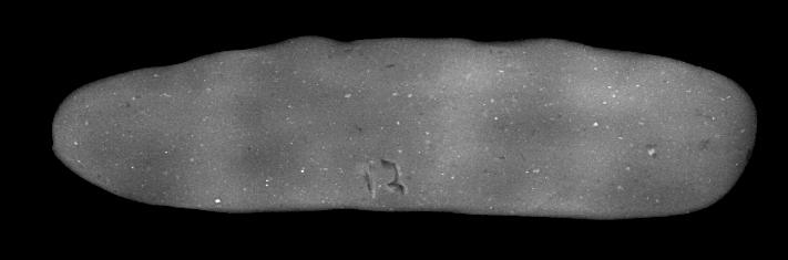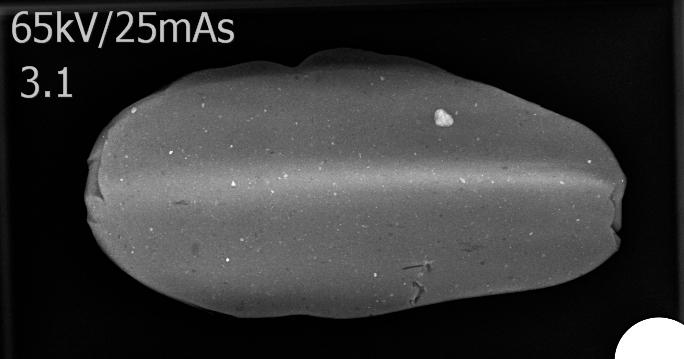 X-rays are easily able to distinguish between simple and folded tablets both in the top-down view and the side view (See Figures 7-10). The air spaces between the folds are clearly visible in the side view and the unevenness of the tablet thickness is visible in the top-down view. In contrast, the simple tablet is characterised by a coherent thickness throughout and an absence of joints or voids.
