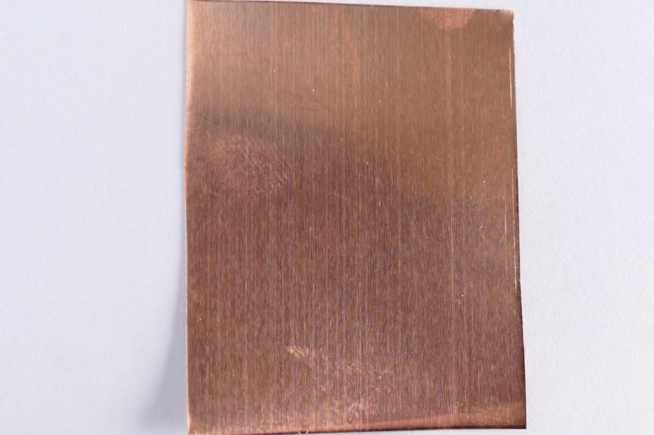 Due to gold being an expensive metal, not suited for repeated experimental research, a substitute had to be considered. Bracteates vary somewhat in thickness, usually between 0.2- 0.4mm (Axboe, 2004). To emulate the gold bracteates, copper-sheets of 0.1mm (99,9% annealed copper from efco creative, product number 9955014) in thickness were used. Gold has a hardness of 2.5 on Mohs scale, while copper has a hardness of 3. A thinner sheet of copper, 0.1mm instead of 0.2-0.4mm, was used to have a somewhat more pliable material despite its hardness.