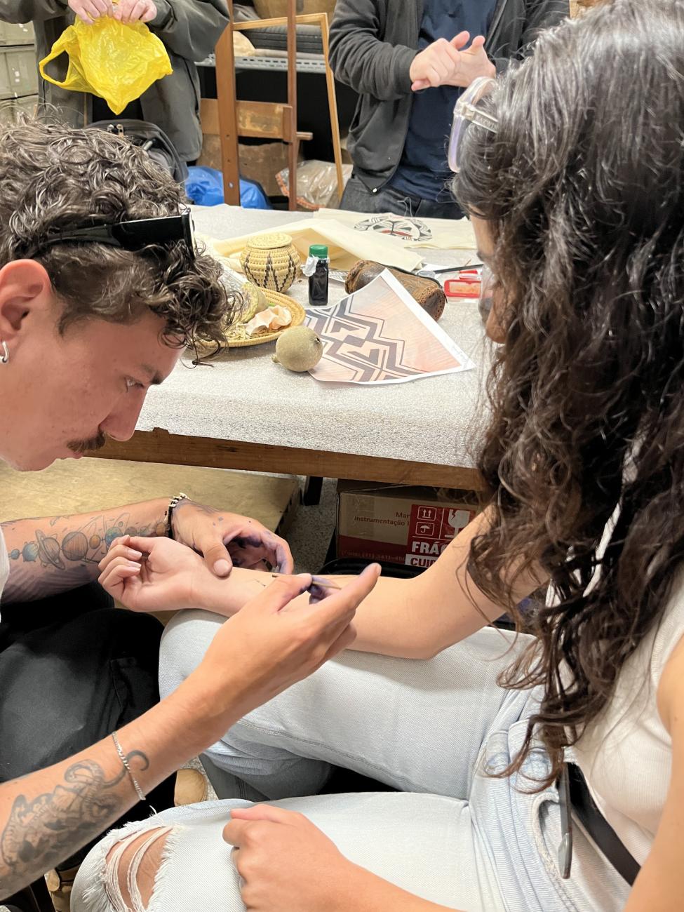 The reason for the academic sessions being held in the afternoons was because the morning program was dedicated to practical in-person workshops held in various rooms and gardens on the Campus Juvevê. There were four workshops on offer to participants: A lithics workshop run by Prof. Dr. Hugo Nami (Monday to Wednesday), a ceramics workshop run by Prof. Ana Elisa de Castro Freitas (Monday to Wednesday), a bone and antler workshop run by Dr Matilda Siebrecht (Monday to Tuesday), and an indigenous painting workshop run by Eldissandra Toscano de Souza (Wednesday).