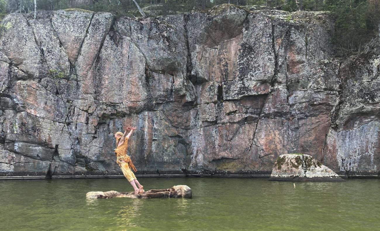 Dancer Arttu Peltoniemi proved in his Dug Boat Dance that dancing on a single-log dugout boat is both possible and an impressive multisensory experience for the dancer and the audience. In the experiment, he discovered that the boat affected dancing in many ways. As a moving and rocking platform, it kept the dancer's ankles, knees, and spine in constant motion, provoking wave-like movements throughout the body. It responded to jumps, steps, and falls by springing down and up again, which created a sense of flying. The Stone Age outfit with hanging pendants served as a portable rattle, and the painted rock cliff of Salmijärvi amplified and repeated the sounds, providing rhythm and musical accompaniment to the dance. Moreover, the repeated movements and multisensory experience of dancing on a boat produced a state of trance in Peltoniemi during the performance. Altogether, this reimagination of prehistoric dance offers insights into the sensory world of the past, particularly bodily sensations, which have been little studied. The unique experiment strengthens the interpretation that rituals performed in Nordic rock art sites could have included dancing on a boat, and some of the paintings and carvings with standing and jumping figures on boats could be depicting such rituals.