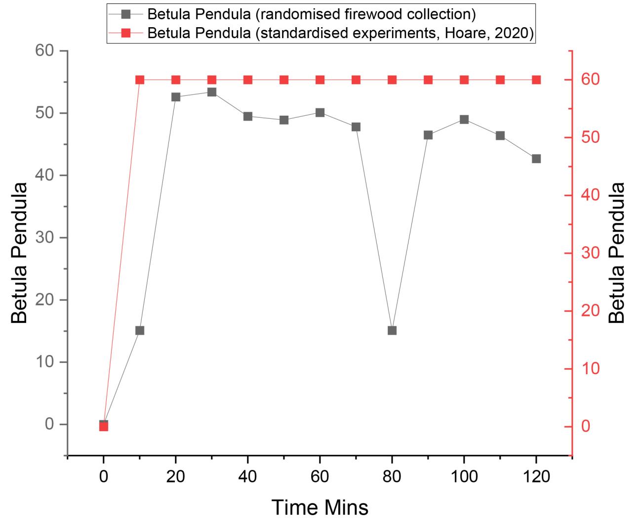 A series of experiments were conducted using open-air hearths to quantify the luminescence properties of various wood species, employing a randomised firewood collection strategy. This approach is relevant to studying firewood selection criteria at both mobile and home-based sites. The primary aim of this study was to test the accuracy of luminescence properties of different wood species, as quantified in previous experiments (e.g., Hoare, 2020; Hoare, et al., 2023), by comparing the results of a consistent standardised experimental protocol (pyramid stacking design, wood diameter, length, and moisture content) against a randomised collection strategy. Following Robledo, et al. (2025), the randomised strategy and flat hearth design are considered more representative of firewood collection practices and fire use among prehistoric hunter-gatherers.