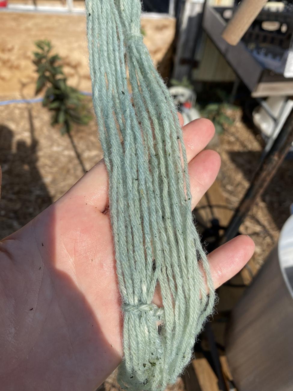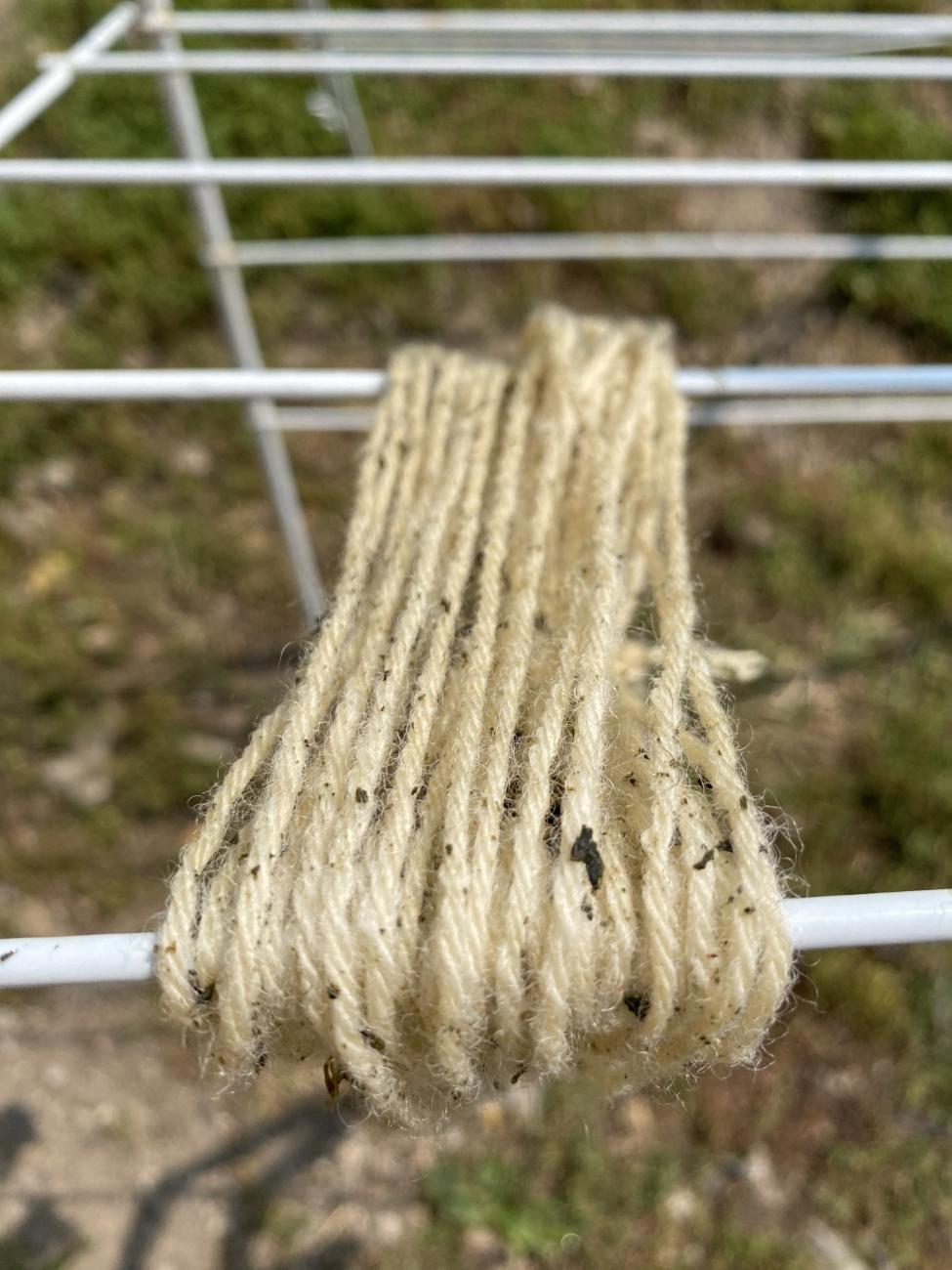 Our yarn sample turned green and then oxidized to a deep blue colour, meaning that this vat was a success! (See Figure 10)