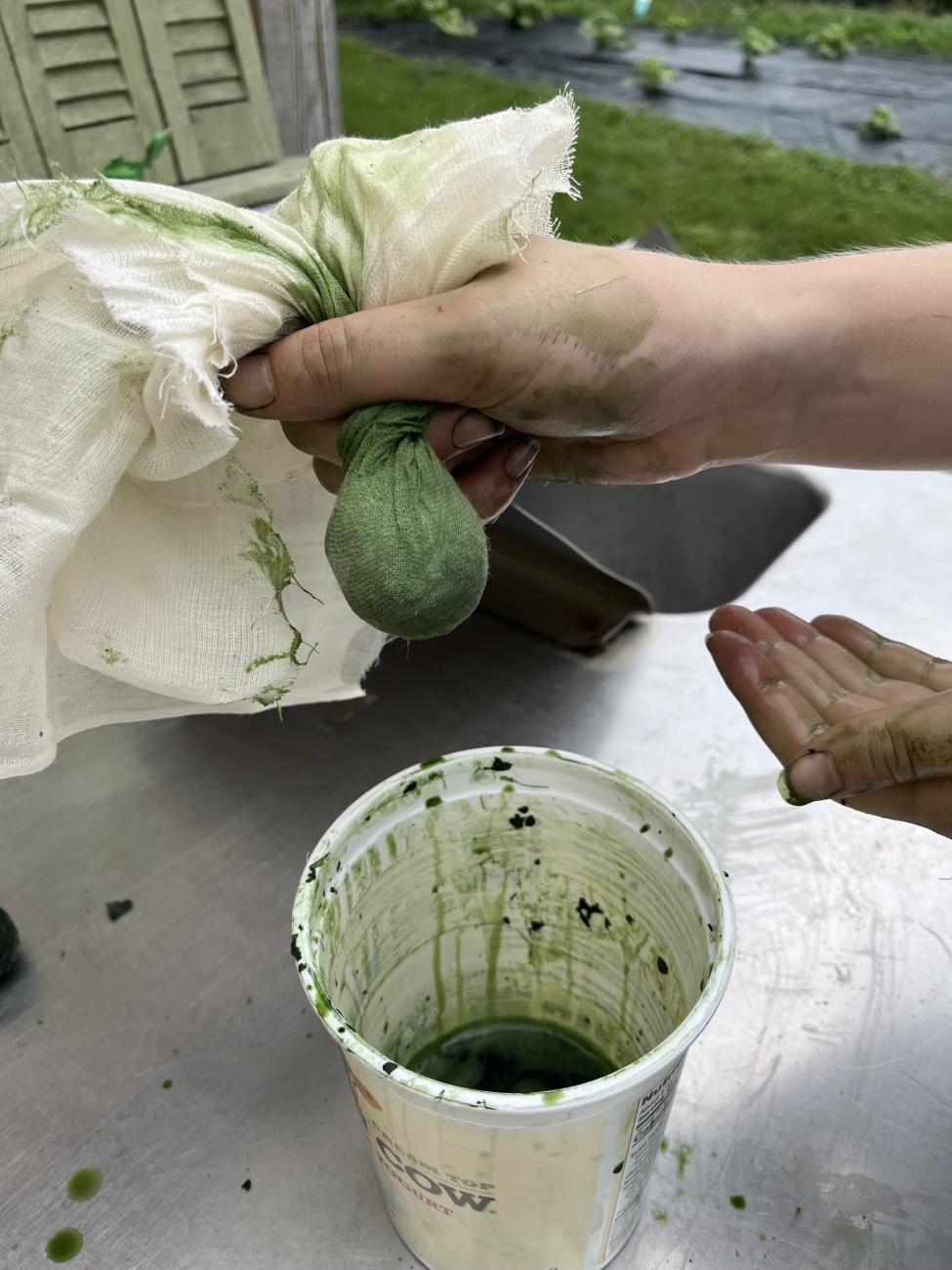 - Once it has steeped, strain off the liquid and squeeze out as much liquid as you can from the leaves using a piece of butter cloth.
