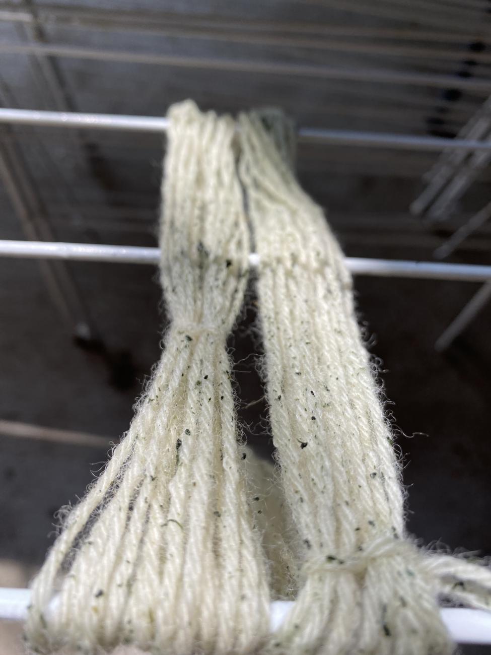- Remove yarn from liquid and gently rinse out any remaining debris