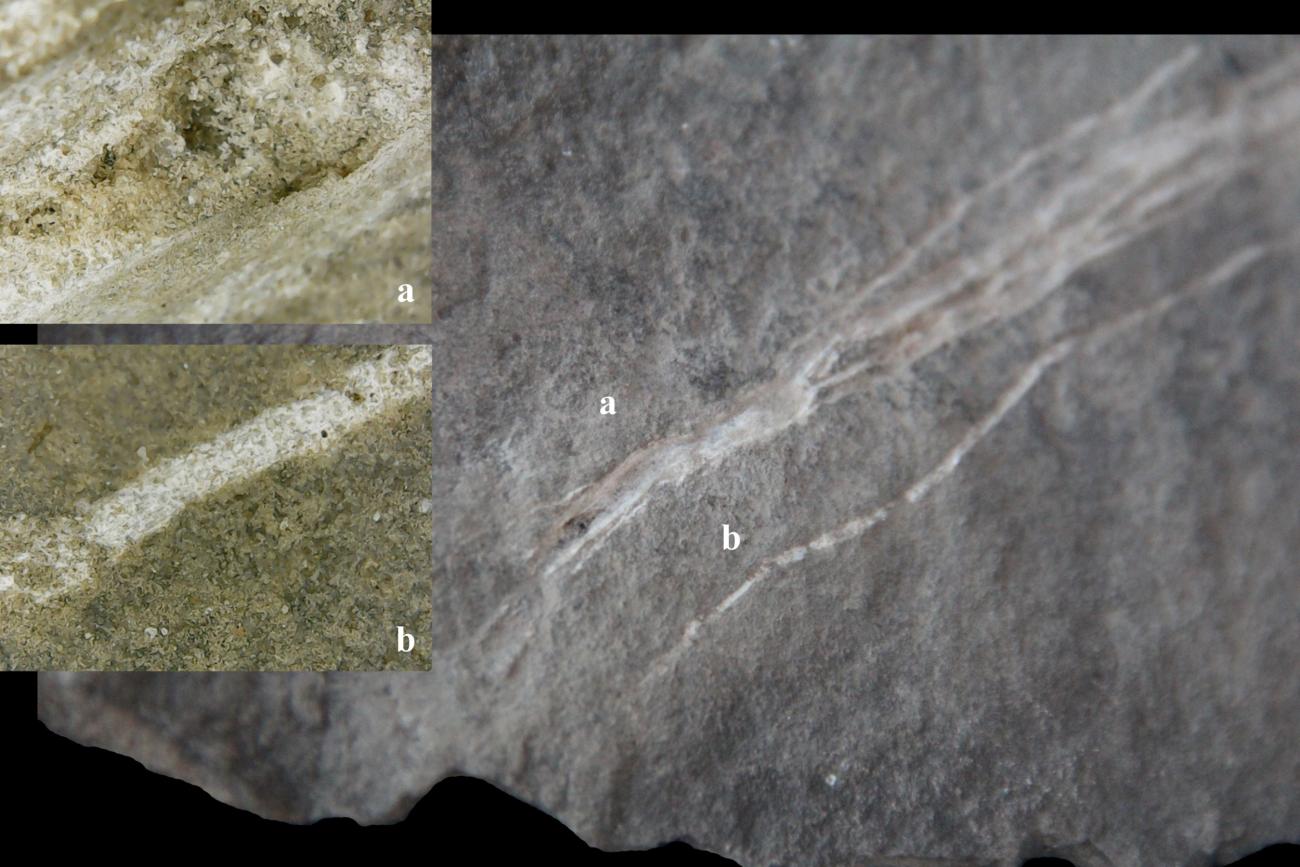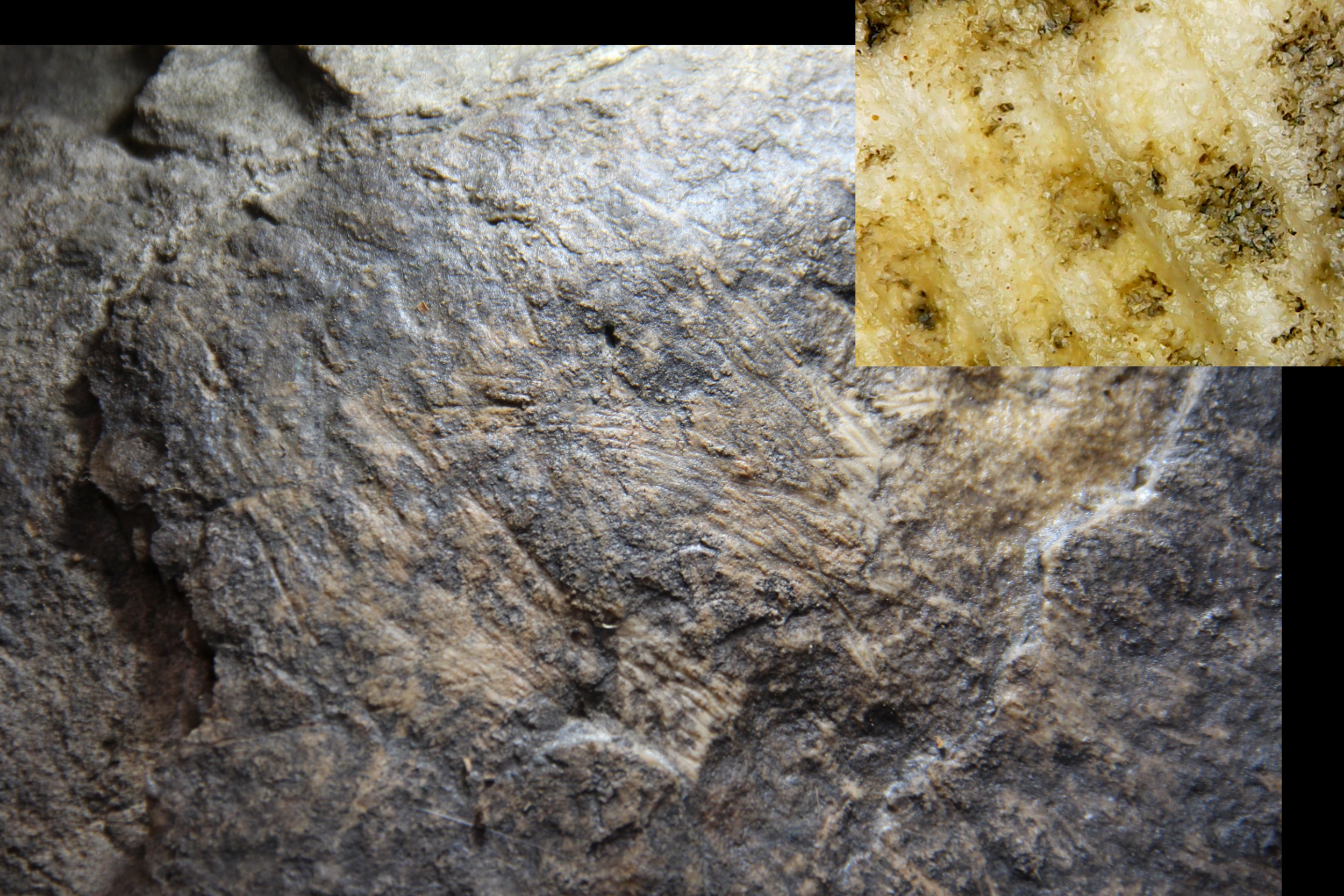 Cutting soft materials on the unworked rock surface resulted in non-systematic, fine, and thin striations. The orientation of the striations was triggered by the manner in which the meat was sliced. Most of the striations exhibit a V-shaped profile, with the presence of inner micro- striations present along the edges and at the valley (i.e., the bottom of the groove). In some cases, the striations bear more U-shaped sections, with several micro-striations on the valley, likely caused by multiple strokes during the cutting process (See Figure 12).