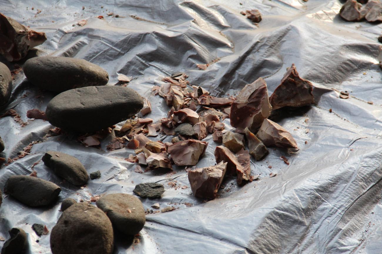 The tools used in the experiments were made of flint collected from the outcrop near the Mghvimevi site. The Imereti region as a whole, and the surroundings of Chiatura, are rich with flint quarries, which explains the dominance of flint among Upper Palaeolithic assemblages in the region (Moncel, et al., 2015), including at Mghvimevi (Kiladze, 1948). Therefore, cobbles were gathered from the Kvirila riverbed, located approximately 500 m from the site.