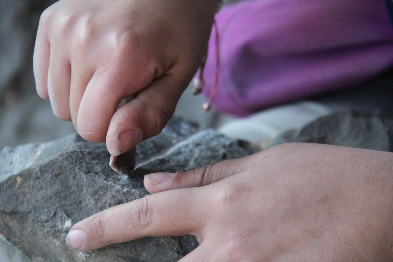 For the experimental rock boards, pieces of the same limestone on which the Palaeolithic engravings are observed were used. These were collected at the site - fragments that had broken off the rock surface.