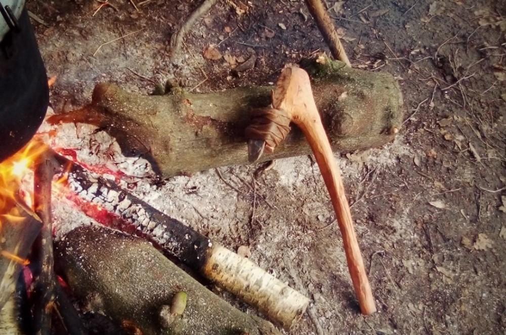 - AXE 2 was made from cherry wood ( Prunus avium ) by CS, featuring a knot at the top of the handle and rawhide to prevent splitting.