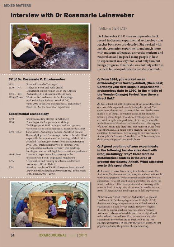 The hard copy EXARC JOURNAL Digest, offers the "best of" all our articles from 2012 and 2013. In Gene Fornby, the Ancient Village of Gene, Carl L. Thunberg describes the excavation, construction and use of this Swedish reconstruction. Frank Kock continues by discussing how to use a reconstructed area as playground - but with serious reasons. A well-wrought article on high carbon steel is presented by Adrian Wrona from Poland while in the mean time they were testing living in the cold in a Viking Age reconstructed house in Estonia (Kristiina Paavel). Janet Stephens from the USA presents how to recreate Roman Era hairstyles. Thit Birk Petersen has some serious thoughts on living history.
