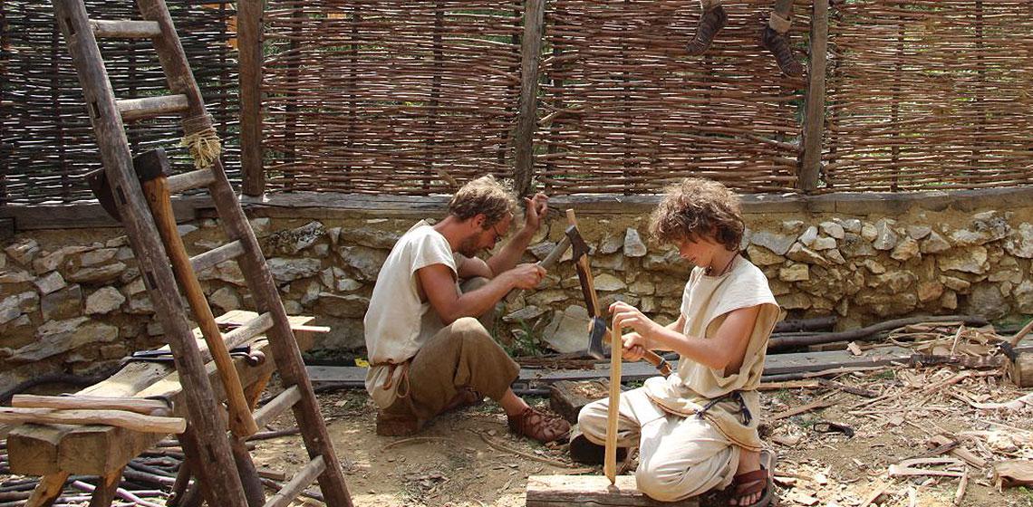 The first project was to build a Gallo-Roman glass workshop, which is the main pole of experiments from the site since its construction. At the moment, the work of the team is focused on the 5th c. BC. Iron Age fortified gallic settlement, with the edification of housing and workshops, including a pottery workshop and an upcoming forge. These workshops are presented according to the principles of living history by organizers and craftspeople in historical costume. In the meantime, a dolmen is in construction in partnership with the museum of the Cité de la Préshitoire d'Orgnac.