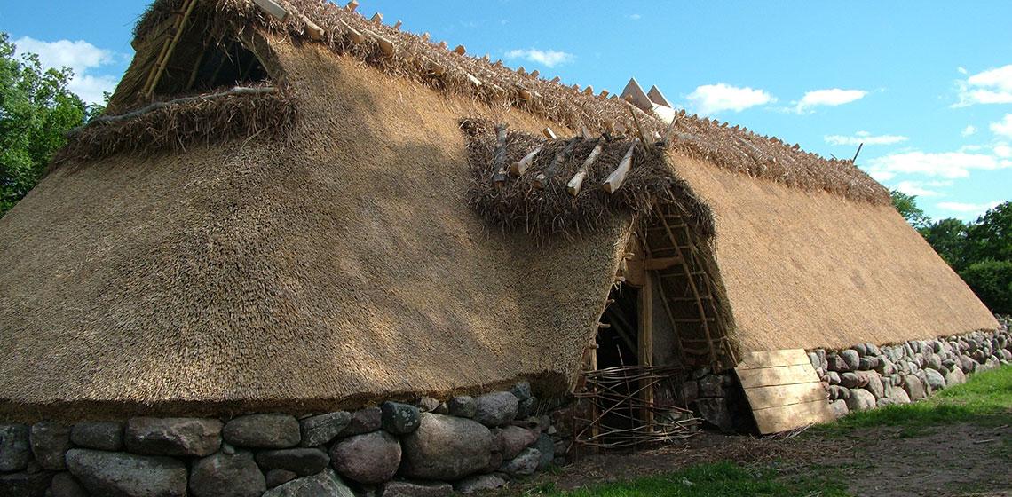 Soon the decision was taken to reconstruct one of the larger longhouses, at start mainly for pedagogic purposes. Since 2000 there has been an ongoing work with creating the surronding landscape of the farm. During the Summer season, it is also open to tourist public when craft demonstrations and living history take place. Next to the impressive longhouse lies the predecessor, a reconstructed house which was destroyed by fire several years ago and now waits to be experimentally excavated.
