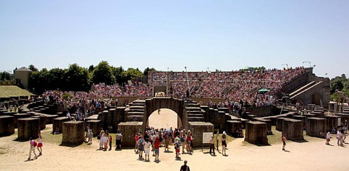 It is an extensive and popular archaeological open-air museum. The most famous reconstructed buildings are the amphitheatre and the temple, parts of which are more than 20 metres tall. Some reconstructed houses are furnished.